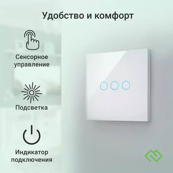 Комплект поставкиУмный выключатель, крепежный элемент, конденсатор, руководство пользователя, гарантийный талон