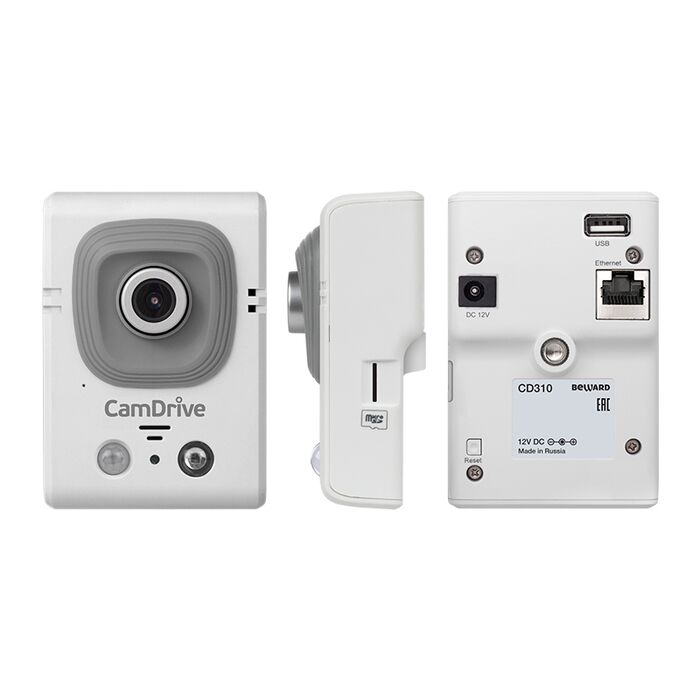 CD310-4G не требует знаний сетевых технологий и установки программного обеспечения, работает от источника постоянного тока напряжением 12 В. Связь с сервисом CamDrive осуществляется через проводное подключение IP-камеры к сети Интернет (прямое подключение) кабелем Ethernet, при этом «белый» IP адрес не требуется. Универсальный кронштейн, идущий в комплекте поставки, позволяет смонтировать камеру CD310-4G на стену или потолок. Так же камеру на кронштейне можно просто поставить на стол или шкаф - она не упадет.