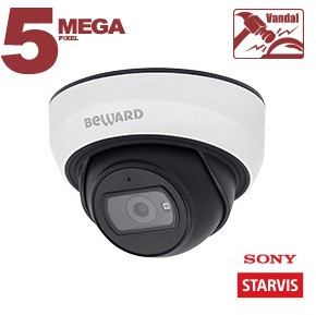 IP-камера Beward SV3210DBS 5 Мп, 1/2.9" КМОП Sony Starvis, 0.006 лк (день)/0.003лк (ночь), 2xWDR до 120 дБ, 3 потока H.265/Н.264 HP/MP/BP, MJPEG, 30к/с, 2560x1920, объектив 2.8 / 3.6 мм (на выбор), цифр. стабилизация изображения, электромеханический ИК-фи