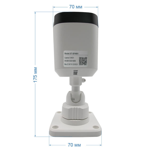 | Комплектность | Камера с кабелем для подключения,крепеж (дюбель-пробка + шуруп),cтикер бумажный самоклеящийся - предо-стережение "Ведется видеонаблюдение",колпачок защитный, ПВХ, для изоляции LAN (RJ-45) разъема от влаги,шаблон бумажный для разметки крепления,паспорт,упаковочная коробка |