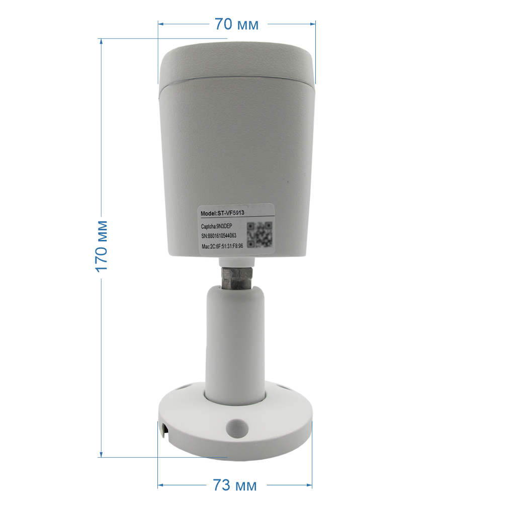 | Комплектность | Камера с кабелем для подключения,крепеж (дюбель-пробка + шуруп),cтикер бумажный самоклеящийся - предо-стережение "Ведется видеонаблюдение",колпачок защитный, ПВХ, для изоляции LAN (RJ-45) разъема от влаги,шаблон бумажный для разметки крепления,паспорт,упаковочная коробка |