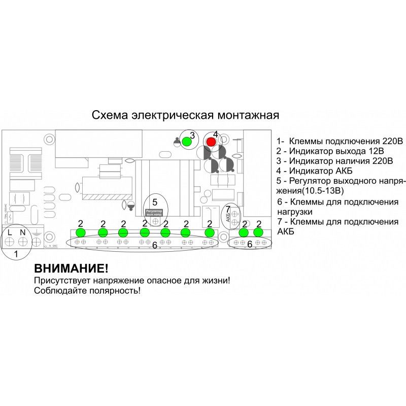 - Напряжение выходное,номинальное при отсутствии напряжения сети 220В(от АКБ): 10,5...12,0 В