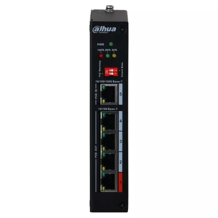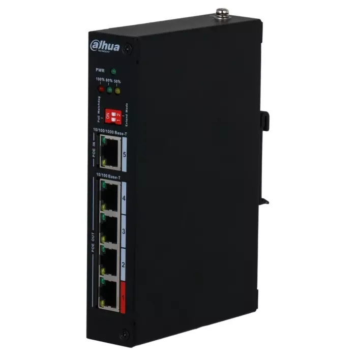 | Особенности | Порты: 4 RJ45 10/100Мбит/с (PoE/PoE+/Hi-PoE); мощность PoE: порт 1 до 85Вт, порты 2~4 до 30Вт, суммарно до 85Вт; питание: PoE (802.3bt) до 90Вт; грозозащита: до 6кВ; рабочая температура: -30°С~+65°С; монтаж на DIN-рейку |