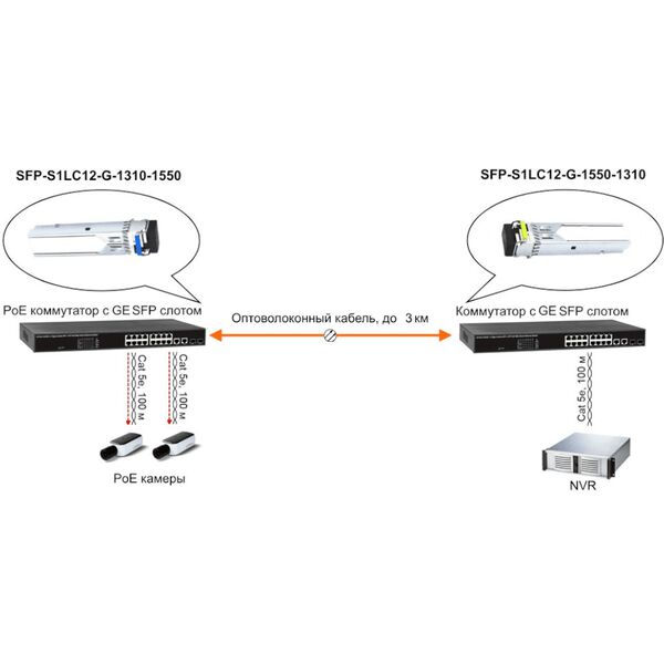 Оптический одноволоконный SFP-модуль Osnovo предназначен для построения больших систем видеонаблюдения с удаленными объектами путем подключения к коммутаторам оптоволоконного кабеля.