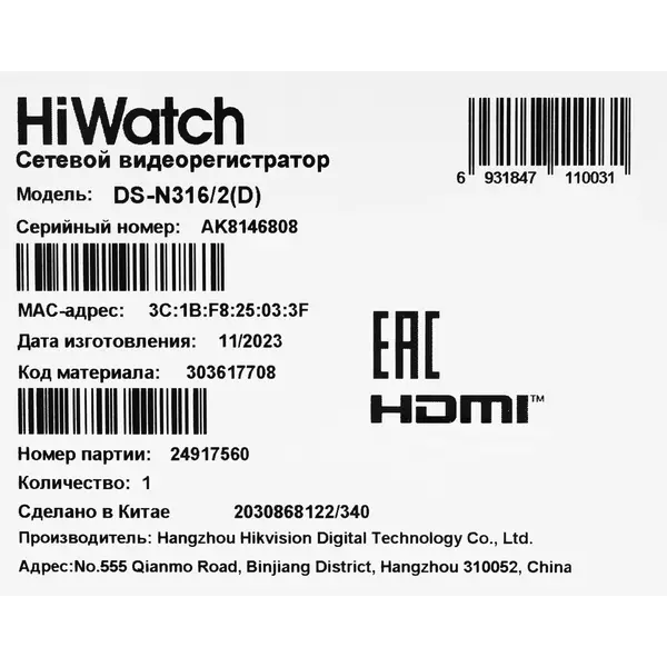 Наличие товара HiWatch DS-N316/2(D)