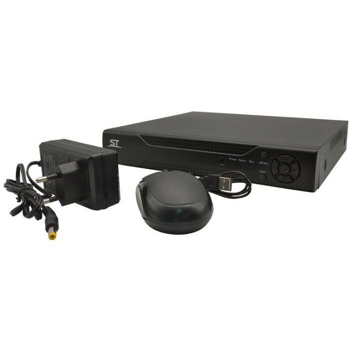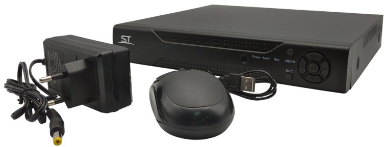 - Источник питания ~220/12 Вольт с кабелем и вилкой, мышь со скролом и кабелем подключения к USB разъему для управления регистратором, винты крепления HDD к регистратор, стикер бумажный самоклеющийся предупреждение «Ведется видеонаблюдение», паспорт регистратора, тарная упаковка