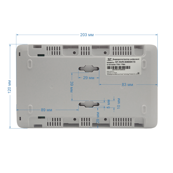 | Напряжение питания/ потребляемая мощность (без HDD) | 12В / 10Вт |