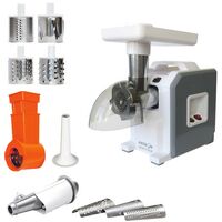 Основные характеристики Мощность: 300 Вт Производительность: 0.58 кг/мин Насадки: насадка-терка, насадка для шинковки, диск для фарша Материал...