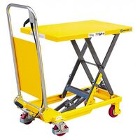 Основные характеристики г/п, т: 0,35 Платформа, мм: 900х510 ф колес, мм: 127 Н подъема, мм: 1300 H подхвата, мм: 350 Масса, кг: 105...